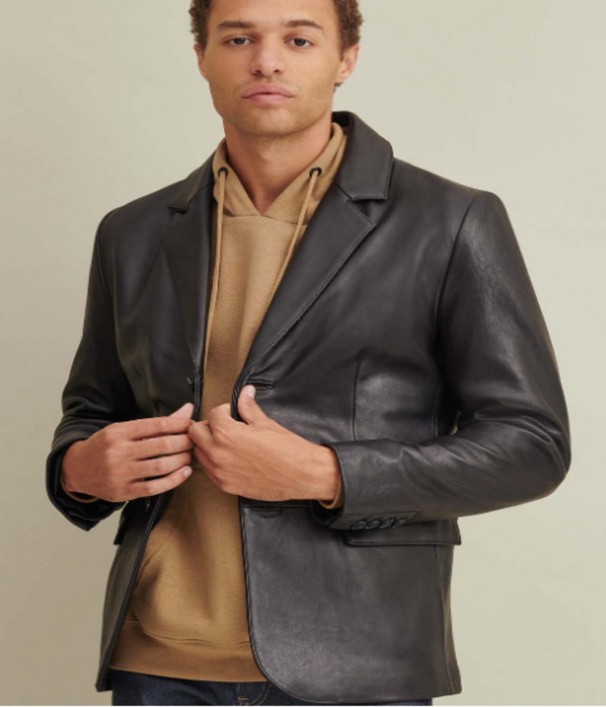 This leather blazer will successfully outfit you for any occasion. A little edgier than a standard blazer, this one is expertly crafted from smooth lamb with a sultry shine. The two-button front, flap pockets and notch collar keep it traditional but never boring. All our RDK Leather brand jackets are timeless basics with a comfortable fit. Runs true to size.